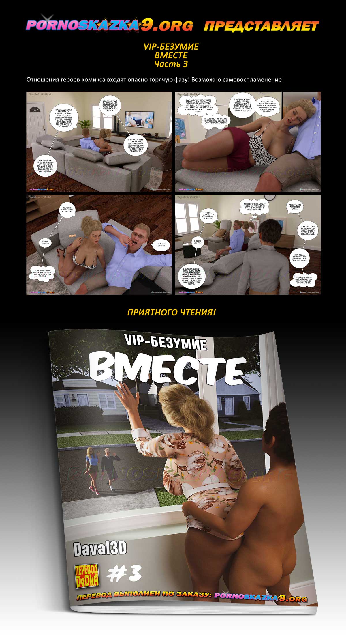 Порно комикс «VIP-безумие. Вместе. Часть 3. Отношения героев комикса входят опасно горячую фазу! Возможно самовоспламенение!